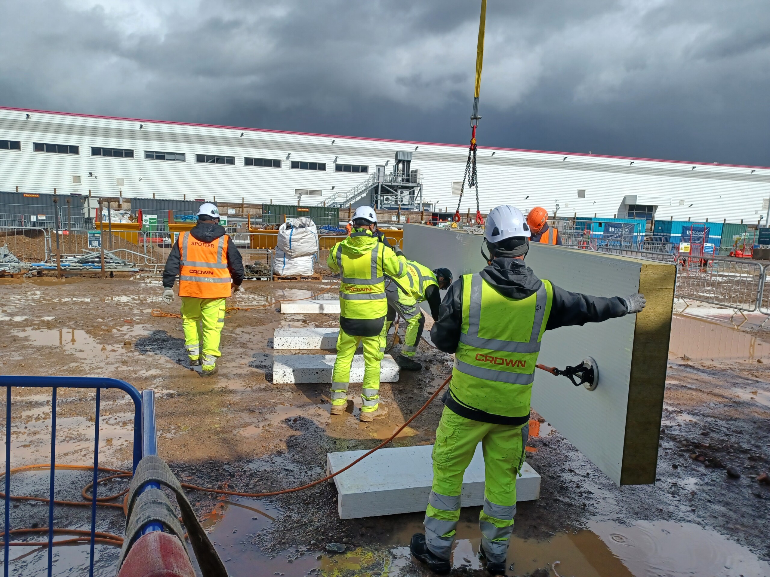 Despite heavy, autumnal showers, numerous members of Team Crown project colleagues across all trades and representatives from our client John Paul Construction and the (confidential) end client joined us for the demo, illustrating mutual recognition of the importance of safe lifting and commending Team Crown for proactive risk mitigation.