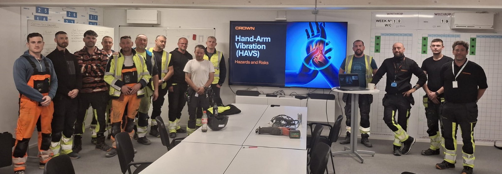 On a mission critical site in Sweden, our H&S team recently delivered training on Hand-Arm Vibration Syndrome (HAVS) and the long-term damage it can cause, such as Vibration White Finger. Practical examples of the various tools that are used on site were shared, trigger times for each were calculated, and associated control measures were discussed.