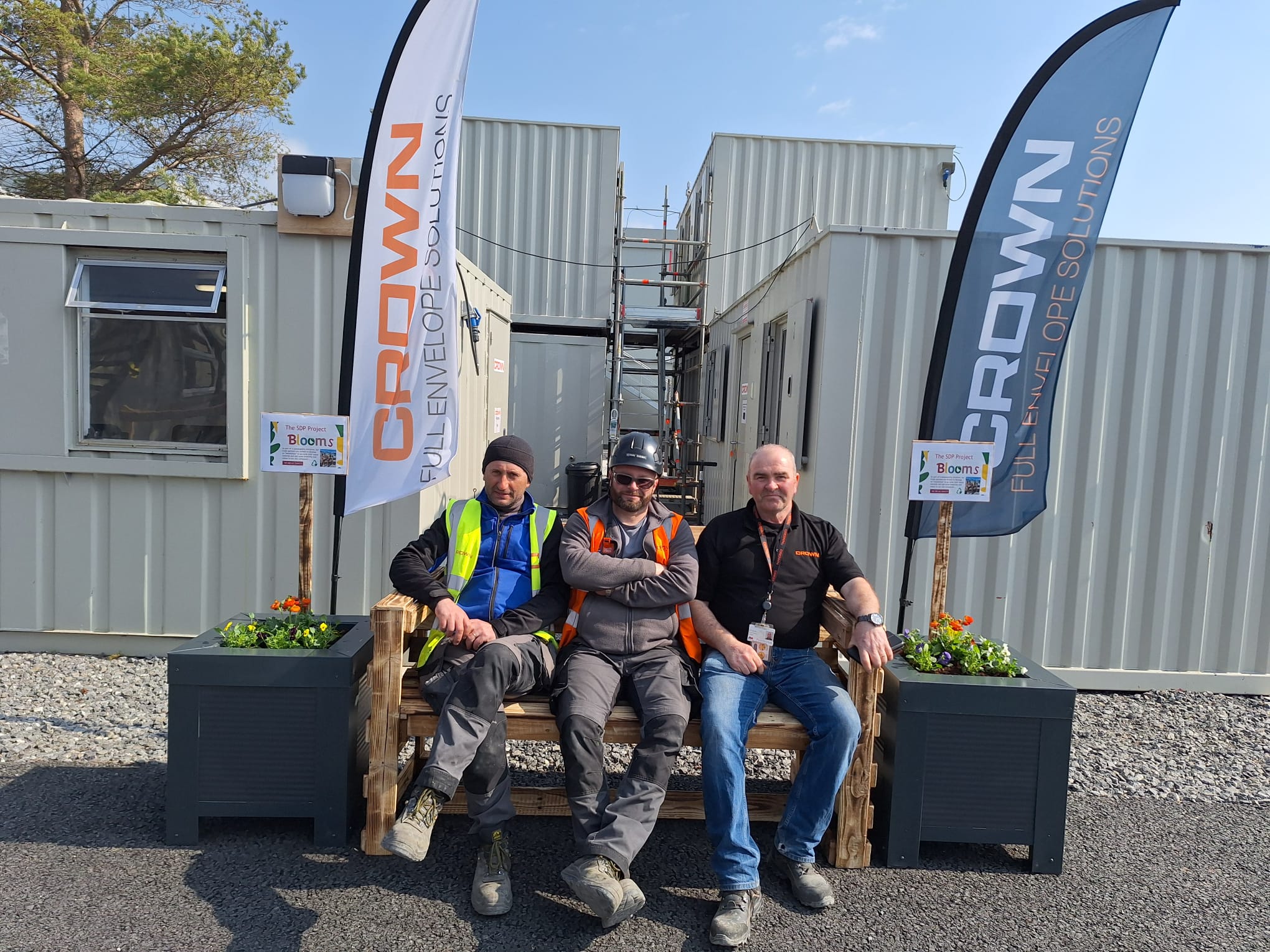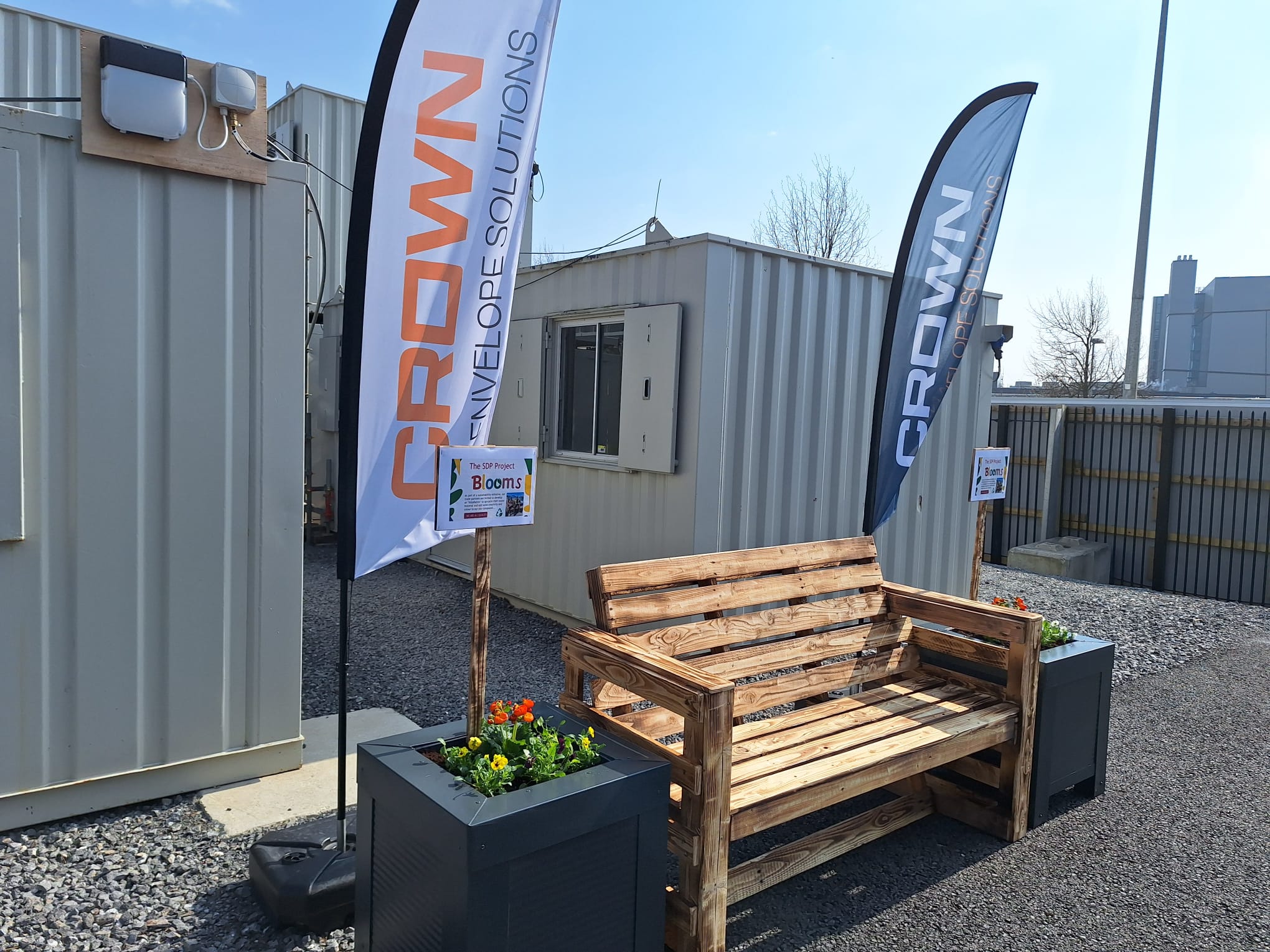 Our team on a life sciences project in Ireland, recently took the initiative to create a seating area, using recycled materials, for all of their site colleagues to enjoy. The bench is made out of recycled pallets, sanded and fixed using the recycled nails from other pallets, before finally being torched for an enhanced appearance, and the planters were made using off-cuts of Kingspan composite panels and off-cuts of coated pressings.